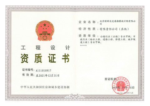 公路行業(yè)(公路)專(zhuān)業(yè)甲級(jí);市政行業(yè)(給水工程、道路工程、橋梁工程、城市隧道工程)專(zhuān)業(yè)甲級(jí)