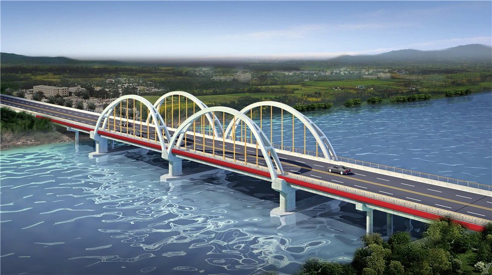 蘆苞大橋采用主橋兩孔凈跨40m的鋼筋混凝土下承式預(yù)應(yīng)力系桿拱,拱肋為分離式開叉獨(dú)立拱肋,不設(shè)置肋間橫撐。吊桿間距4m,每跨兩側(cè)均設(shè)9根。主橋兩側(cè)各接兩邊引橋均為2x20m先簡支后連續(xù)T梁,具體跨徑布置為19.62+20.8+2X42.7+20.8+19.62m。